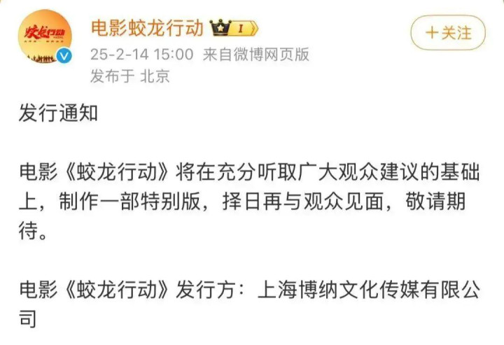 说暂时撤档,然后剪辑一版特别版,再选择其他档期上映,又被网友们嘲笑。