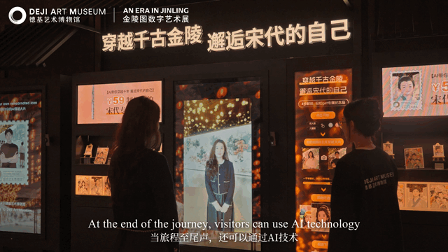 德基艺术博物馆全球首创“人物入画,实时跟随”的互动观展模式,使观众可以通过智能手环一键入画,置身千年前的宋代金陵。