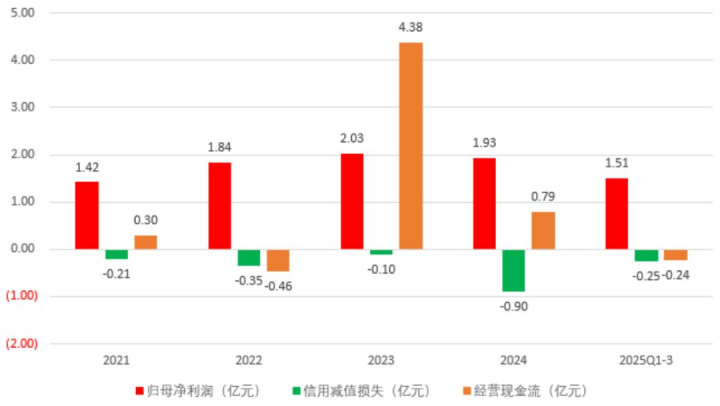 2024年公司账面净利润2亿,但实际到手的经营现金流不足8千万,2021年至2025年三季度,累计经营性现金流净额4.77亿,仅为同期累计净利润的54.7%。