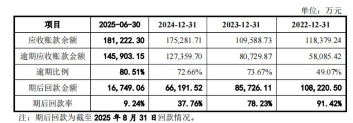 到2025年中,逾期率直接攀升至80.5%,而已经逾期的款项中,只有9.2%能在期后收回。