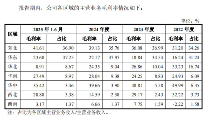 2024年东北区域贡献了超过35%的收入,毛利率逼近40%,远高于其他地区。
